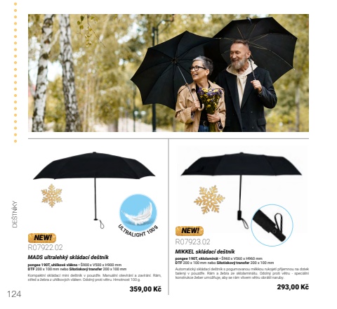 124DE%u0160TN%u00cdKYULTRALIGHT 100gR07922.02MADS ultralehk%u00fd skl%u00e1dac%u00ed de%u0161tn%u00edkpongee 190T, uhl%u00edkov%u00e9 vl%u00e1kno %u2022 %u0160900 x V500 x H900 mmDTF 200 x 100 mm nebo S%u00edtotiskov%u00fd transfer 200 x 100 mmKompaktn%u00ed skl%u00e1dac%u00ed mini de%u0161tn%u00edk v pouzd%u0159e. Manu%u00e1ln%u00ed otev%u00edr%u00e1n%u00ed a zav%u00edr%u00e1n%u00ed. R%u00e1m, st%u0159ed a %u017eebra z uhl%u00edkov%u00fdch vl%u00e1ken. Odoln%u00fd proti v%u011btru. Hmotnost 100 g.359,00 K%u010dR07923.02MIKKEL skl%u00e1dac%u00ed de%u0161tn%u00edkpongee 190T, sklolamin%u00e1t %u2022 %u0160960 x V560 x H960 mmDTF 200 x 100 mm nebo S%u00edtotiskov%u00fd transfer 200 x 100 mmAutomatick%u00fd skl%u00e1dac%u00ed de%u0161tn%u00edk s pogumovanou m%u011bkkou rukojet%u00ed p%u0159%u00edjemnou na dotek balen%u00fd v pouzd%u0159e. R%u00e1m a %u017eebra ze sklolamin%u00e1tu. Odoln%u00fd proti v%u011btru - speci%u00e1ln%u00ed konstrukce %u017eeber umo%u017e%u0148uje, aby se r%u00e1m vlivem v%u011btru obr%u00e1til naruby.293,00 K%u010dNEW!NEW!