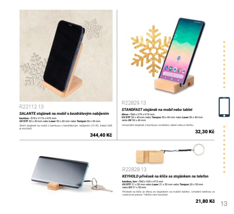 13R22112.13SALANTE stoj%u00e1nek na mobil s bezdr%u00e1tov%u00fdm nab%u00edjen%u00edmbambus %u2022 %u016070 x V115 x H75 mmUV DTF 50 x 30 mm nebo Laser 50 x 30 mm nebo Tampon 50 x 30 mmStoln%u00ed stoj%u00e1nek na mobil z bambusu s bezdr%u00e1tov%u00fdm nab%u00edjen%u00edm (10 W). Kabel USB je sou%u010d%u00e1st%u00ed.344,40 K%u010dR22829.13STANDFAST stoj%u00e1nek na mobil nebo tabletd%u0159evo %u2022 %u016060 x V79 x H19 mmUV DTF 50 x 40 mm nebo Tampon 50 x 40 mm nebo Laser 50 x 40 mmnebo UV 50 x 40 mmUniverz%u00e1ln%u00ed stoj%u00e1nek z bambusu na telefon, tablet nebo e-%u010dte%u010dku.32,30 K%u010dR22828.13KEYHOLD p%u0159%u00edv%u011bsek na kl%u00ed%u010de se stoj%u00e1nkem na telefonbambus, kov %u2022 %u016060 x V26 x H15 mmUV DTF 21 x 50 mm nebo Laser 21 x 50 mm nebo Tampon 20 x 50 mmnebo UV 21 x 50 mmP%u0159%u00edv%u011bsek na kl%u00ed%u010de ze d%u0159eva se stoj%u00e1nkem na mobiln%u00ed telefon. Um%u00edst%u011bn%u00ed telefonu ve vodorovn%u00e9 poloze. Telefon nen%u00ed sou%u010d%u00e1st%u00ed.21,80 K%u010d