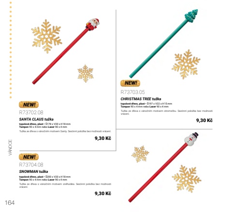 164V%u00c1NOCENEW!NEW!NEW!R73702.08SANTA CLAUS tu%u017ekatopolov%u00e9 d%u0159evo, plast %u2022 %u0160178 x V20 x H18 mmTampon 90 x 4 mm nebo Laser 90 x 4 mmTu%u017eka ze d%u0159eva s v%u00e1no%u010dn%u00edm motivem Santy. Sez%u00f3nn%u00ed polo%u017eka bez mo%u017enosti vr%u00e1cen%u00ed.9,30 K%u010dR73704.08SNOWMAN tu%u017ekatopolov%u00e9 d%u0159evo, plast %u2022 %u0160200 x V20 x H18 mmTampon 90 x 4 mm nebo Laser 90 x 4 mmTu%u017eka ze d%u0159eva s v%u00e1no%u010dn%u00edm motivem sn%u011bhul%u00e1ka. Sez%u00f3nn%u00ed polo%u017eka bez mo%u017enosti vr%u00e1cen%u00ed.9,30 K%u010dR73703.05CHRISTMAS TREE tu%u017ekatopolov%u00e9 d%u0159evo, plast %u2022 %u0160197 x V22 x H15 mmTampon 90 x 4 mm nebo Laser 90 x 4 mmTu%u017eka ze d%u0159eva s v%u00e1no%u010dn%u00edm motivem strome%u010dku. Sez%u00f3nn%u00ed polo%u017eka bez mo%u017enosti vr%u00e1cen%u00ed.9,30 K%u010d