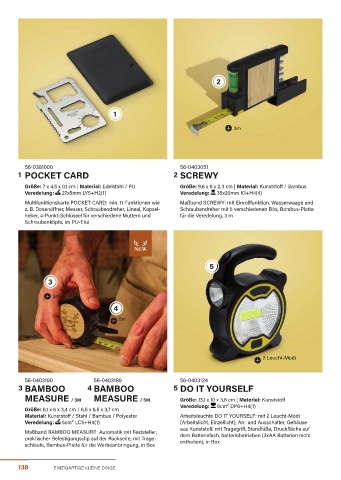 z. B. Dosenöffner, Messer, Schraubendreher, Lineal, Kapsel- Schraubendreher mit 5 verschiedenen Bits, Bambus-Platte