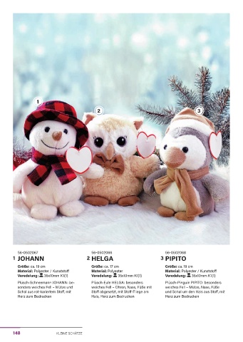 Plüsch-Schneemann JOHANN: be- Plüsch-Eule HELGA: besonders Plüsch-Pinguin PIPITO: besonders