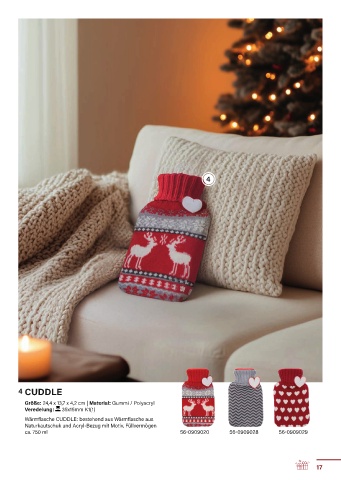 4 4 CUDDLE Größe: 24,4 x 13,7 x 4,2 cm | Material: Gummi / Polyacryl Veredelung: 35x15mm K1(1) Wärmflasche CUDDLE: bestehend aus Wärmflasche aus Naturkautschuk und Acryl-Bezug mit Motiv, Füllvermögen ca. 750 ml 56-0909020 56-0909028 56-0909029 17 17