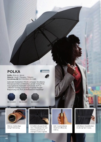 Automatik-Stockschirm POLKA: schwarzer Metallstock,