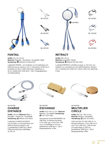 Ladekabel FANTAIL: zum Aufladen von Smartphones und Ladekabel RETRACT, aufrollbar (Länge: ca. 100 cm): zum