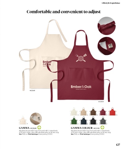 in 240 gr/m² organic cotton. With adjustable button on the neck strap. in 240 gr/m² organic cotton. With adjustable button on the neck strap.