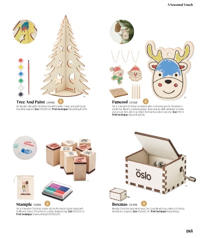 DIY wooden silhouette Christmas tree with 6 water colours and paint brush. Set of 3 wooden Christmas ornaments with 4 colouring pencils. Presented in