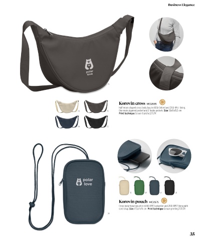 Cross body travel pouch in 600D RPET polyester and 210D RPET lining with