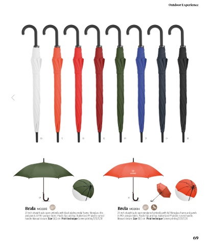 and panels in 190T pongee fabric. Plastic tips and top. Rubberized PP plastic curved in 190T pongee fabric. Plastic tips and top. Rubberized PP plastic curved handle.