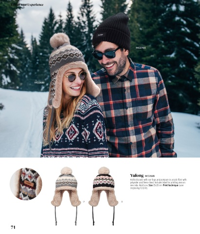 Knitted beanie with ear flaps and pompom in acrylic fibre with