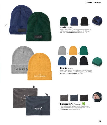 Unisex knitted beanie hat in acrylic outside and polyester inside