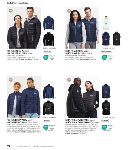 92 *Sizes available in some colors Available in men’s and women’s versions
