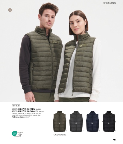 Sleeveless down jacket. Taffeta 280T. Outer fabric and