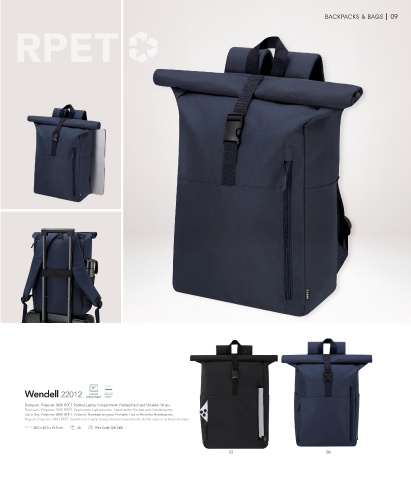 Backpack. Polyester 300D RPET. Padded Laptop Compartment. Padded Back and Shoulder Straps.