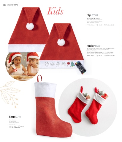 Kids Christmas Hat. Polyester/ Non-Woven. 4 Crayons Included.