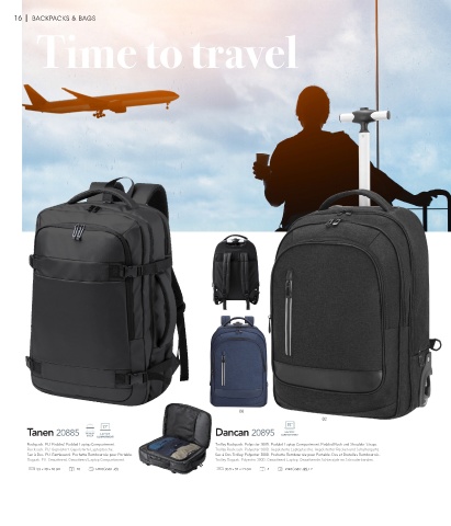 Backpack. PU. Padded. Padded Laptop Compartment. Trolley Backpack. Polyester 300D. Padded Laptop Compartment. Padded Back and Shoulder Straps.