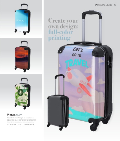 Trolley. PC/ ABS. Rigid. 4 Rotating Wheels. Combination Lock.