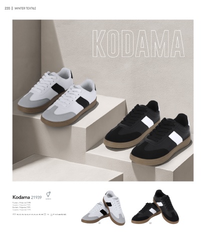 220 I WINTER TEXTILE Kodama 21939 UNISEX Trainers. Polyester/ TPR. Sneaker. Polyester/ TPR. Baskets. Polyester/ TPR. Ciabatte. Polyester/ TPR. 01 02