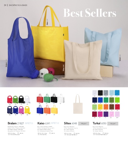 Foldable Bag. Polyester 190T RPET. Bag. Laminated Polyester RPET. Bag. Cotton 140 g/ m2. Bag. Cotton 140 g/ m2.