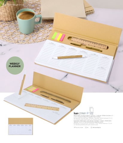 Weekly Planner. Recycled Cardboard. 125 Sheets. 7 Languages. 100 Mini Sticky Notes 1,2