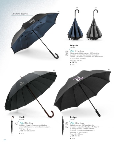 a šestnástimi panelmi, s automatickým otváraním. držadlom a rebrami a rukoväťou z PP. Dáždnik