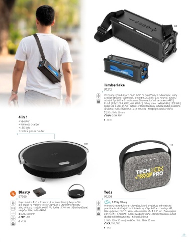 nabíjačky: 10 W | Nabíjací kábel látka a polyester | BT v5.0 | Vstup: prehrávač micro SD a AUX 3,5 mm | Zvukový výkon: