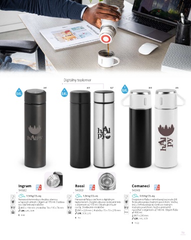 a čajovým sitkom. Objem až 470 ml. Dodáva teplomerom. Dvojité vákuovo izolované telo % recyklovaná) s matným povrchom. Viečko,
