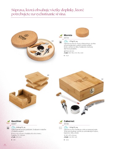 Sada 4 bambusových podtáciek. Dodávané v krabičke Súprava na víno z bambusu, zinku a nerezovej ocele.