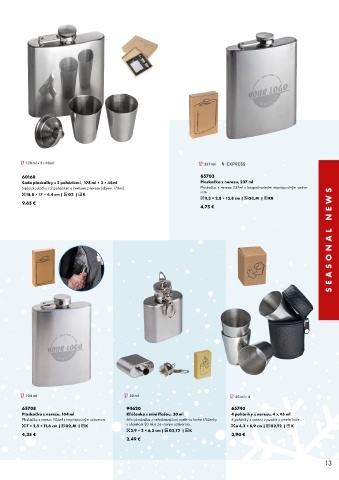Ploskačka z nerezu, 104 ml Kľúčenka s mini fľašou, 30 ml 4 poháriky z nerezu, 4 x 45 ml