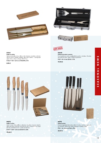 Sada pozostáva: kuchársky nôž (34 cm), nôž na chlieb (33 cm), krájaci kou rukoväťou. Nože držia vďaka magnetu na drevenej doske.