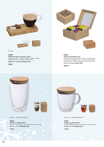 Dvojstenný sklenený pohár s objemom 500 ml a vekom z bambusu. Dvojstenný sklenený hrnček s objemom 350 ml a vekom z bambusu.