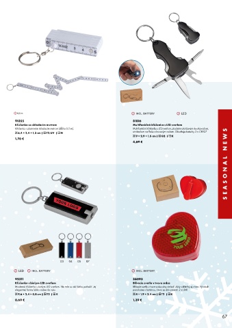 Kľúčenka s plastovým skladacím metrom (dĺžka 0,5 m).        Multifunkčná kľúčenka s LED svetlom, plochým a krížovým skrutkovačom,   S