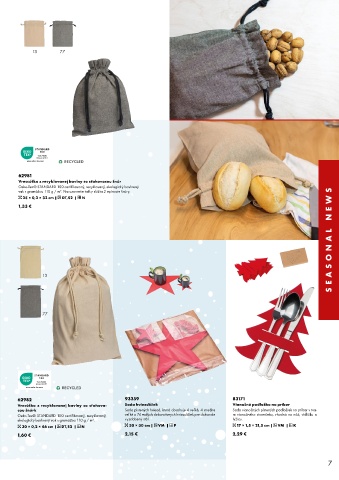 Vrecúško z recyklovanej bavlny so sťahova- Sada hviezdičiek Vianočná podložka na príbor