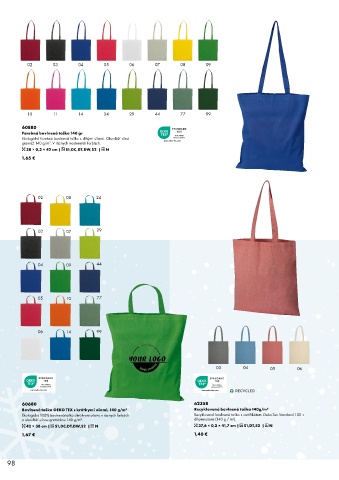 Ekologická 100% bavlnená taška s krátkymi ušami, v rôznych farbách Recyklovaná bavlnená taška s certifikátom Oeko-Tex Standard 100 s