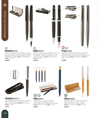 klipom. Dodávané v kovovej krabičke rovnakej kovovým klipom a bambusovým vrškom. S s guličkovým perom a rollerom v darčekovej