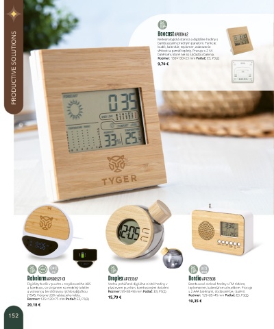 a bambusu, so stojanom na mobilný telefón plastovom puzdre s bambusovými detailmi. teplomerom, kalendárom a budíkom. Pracuje