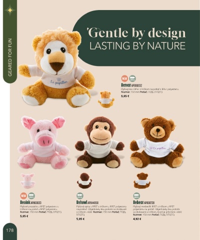 Plyšové prasiatko z RPET polyesteru s Plyšová opica s RPET s tričkom z RPET polyesteru Plyšový medvedík RPET s tričkom z RPET