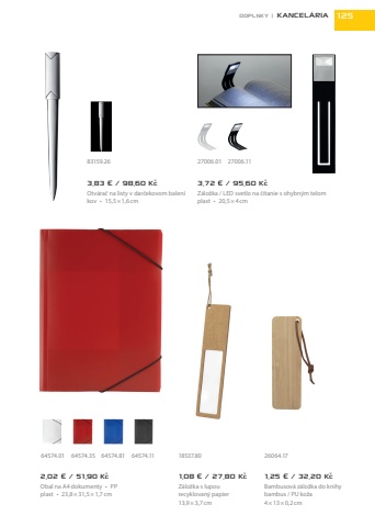 1,08 %u20ac / 27,80 K%u010dZ%u00e1lo%u017eka s%u00a0lupourecyklovan%u00fd papier13,9%u00d73,7cm2,02 %u20ac / 51,90 K%u010dObal na A4 dokumenty %u2022 PP plast %u2022 23,8%u00d731,5%u00d71,7cm1,25 %u20ac / 32,20 K%u010dBambusov%u00e1 z%u00e1lo%u017eka do knihybambus / PU ko%u017ea4%u00d713%u00d70,2cm3,83 %u20ac / 98,60 K%u010dOtv%u00e1ra%u010d na listy v%u00a0dar%u010dekovom balen%u00edkov %u2022 15,5%u00d71,6cm3,72 %u20ac / 95,60 K%u010dZ%u00e1lo%u017eka / LED svetlo na %u010d%u00edtanie s%u00a0ohybn%u00fdm telomplast %u2022 20,5%u00d74cm64574.01 64574.35 64574.81 64574.11 18537.8083159.26 27006.01 27006.1126064.17DOPLNKY | KANCEL%u00c1RIA 125