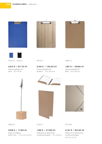 2,63 %u20ac / 67,70 K%u010dP%u00edsacia podlo%u017eka A4plast %u2022 32%u00d723cm5,26 %u20ac / 135,20 K%u010dP%u00edsacia podlo%u017eka A4bambus %u2022 31,5%u00d722,5cm1,82 %u20ac / 46,80 K%u010dP%u00edsacia podlo%u017eka A4MDF %u2022 32%u00d722,5cm1,08 %u20ac / 27,80 K%u010dZlo%u017eka A4 na dokumentyrecyklovan%u00fd papier %u2022 31%u00d723,5cm2,42 %u20ac / 62,40 K%u010dZlo%u017eka A4 na dokumentyrecyklovan%u00fd papier34%u00d725%u00d73,1cm0,69 %u20ac / 17,80 K%u010dStojan na odkazydrevo / kov %u2022 11,5%u00d72,5%u00d72,5cm25535.25 25535.1127337.1760170.17 20837.1393505.22 01710.00126 KANCEL%u00c1RIA | DOPLNKY