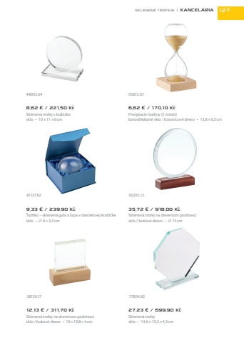 8,62 %u20ac / 221,50 K%u010dSklenen%u00e1 trofej s%u00a0krabi%u010dkesklo %u2022 10%u00d711%u00d76cm9,33 %u20ac / 239,90 K%u010d%u0164a%u017e%u00edtko %u2013 sklenen%u00e1gu%u013ea a%u00a0lupa v%u00a0dar%u010dekovej krabi%u010dkesklo %u2022 @ 8%u00d73,5cm35,72 %u20ac / 918,00 K%u010dSklenen%u00e1 trofej na drevenom podstavcisklo / bukov%u00e9 drevo %u2022 @ 15cm27,23 %u20ac / 699,90 K%u010dSklenen%u00e1 trofejsklo %u2022 14,6%u00d715,5%u00d74,3cm12,13 %u20ac / 311,70 K%u010dSklenen%u00e1 trofej na drevenom podstavcisklo / bukov%u00e9 drevo %u2022 10%u00d710,8%u00d74cm6,62 %u20ac / 170,10 K%u010dPres%u00fdpacie hodiny (5 min%u00fat)borosilik%u00e1tov%u00e9 sklo / borovicov%u00e9 drevo %u2022 13,8%u00d76,5cm48903.64 55872.0781137.82 92205.1338129.17 77804.82SKLENEN%u00c9 TROFEJE | KANCEL%u00c1RIA 127