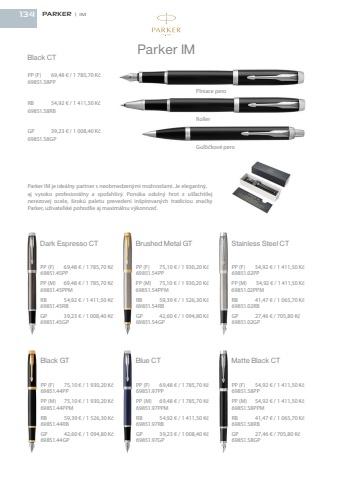 Parker IMPlniace peroRollerGu%u013e%u00f4%u010dkov%u00e9 peroBlack CTDark Espresso CT Brushed Metal GT Stainless Steel CTBlack GT Blue CT Matte Black CTParker IM je ide%u00e1lny partner s neobmedzen%u00fdmi mo%u017enos%u0165ami. Je elegantn%u00fd,aj vysoko profesion%u00e1lny a spo%u013eahliv%u00fd. Pon%u00faka odoln%u00fd hrot z u%u0161%u013eachtilej nerezovej ocele, %u0161irok%u00fa paletu preveden%u00ed in%u0161pirovan%u00fdch trad%u00edciou zna%u010dky Parker, u%u017e%u00edvate%u013esk%u00e9 pohodlie aj maxim%u00e1lnu v%u00fdkonnos%u0165.PP (F) 69,48 %u20ac / 1 785,70 K%u010dRB 54,92 %u20ac / 1 411,50 K%u010dGP 39,23 %u20ac / 1 008,40 K%u010dPP (F) 69,48 %u20ac / 1 785,70 K%u010d PP (F) 75,10 %u20ac / 1 930,20 K%u010d PP (F) 54,92 %u20ac / 1 411,50 K%u010dPP (M) 75,10 %u20ac / 1 930,20 K%u010dPP (F) 75,10 %u20ac / 1 930,20 K%u010dPP (M) 69,48 %u20ac / 1 785,70 K%u010dPP (F) 69,48 %u20ac / 1 785,70 K%u010dPP (M) 54,92 %u20ac / 1 411,50 K%u010dPP (F) 54,92 %u20ac / 1 411,50 K%u010dRB 54,92 %u20ac / 1 411,50 K%u010d RB 59,39 %u20ac / 1 526,30 K%u010d RB 41,47 %u20ac / 1 065,70 K%u010dRB 59,39 %u20ac / 1 526,30 K%u010d RB 54,92 %u20ac / 1 411,50 K%u010d RB 41,47 %u20ac / 1 065,70 K%u010dGP 39,23 %u20ac / 1 008,40 K%u010d GP 42,60 %u20ac / 1 094,80 K%u010d GP 27,46 %u20ac / 705,80 K%u010dGP 42,60 %u20ac / 1 094,80 K%u010d GP 39,23 %u20ac / 1 008,40 K%u010d GP 27,46 %u20ac / 705,80 K%u010d69851.58PP69851.58RB69851.58GP69851.45PP 69851.54PP 69851.02PP69851.44PPM69851.44PP69851.97PPM69851.97PP69851.58PPM69851.58PP69851.45RB 69851.54RB 69851.02RB69851.44RB 69851.97RB 69851.58RB69851.45GP 69851.54GP 69851.02GP69851.44GP 69851.97GP 69851.58GPPP (M) 69,48 %u20ac / 1 785,70 K%u010d PP (M) 75,10 %u20ac / 1 930,20 K%u010d PP (M) 54,92 %u20ac / 1 411,50 K%u010d69851.45PPM 69851.54PPM 69851.02PPM134 PARKER | IM