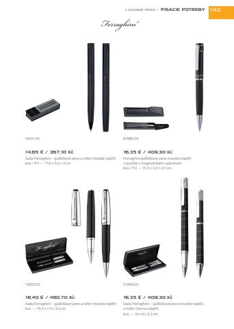 14,65 %u20ac / 367,10 K%u010dSada Ferraghini %u2013 gu%u013e%u00f4%u010dkov%u00e9 pero a%u00a0roller (modr%u00e1 n%u00e1pl%u0148)kov / PU %u2022 17,6%u00d75,6%u00d73cm16,35 %u20ac / 409,30 K%u010dFerraghinigu%u013e%u00f4%u010dkov%u00e9 pero (modr%u00e1 n%u00e1pl%u0148) v%u00a0puzdre s%u00a0magnetick%u00fdm uz%u00e1veromkov / PU %u2022 15,3%u00d73,4%u00d72,5cm18,40 %u20ac / 460,70 K%u010dSada Ferraghini %u2013 gu%u013e%u00f4%u010dkov%u00e9 pero a%u00a0roller (modr%u00e1 n%u00e1pl%u0148)kov %u2022 19,3%u00d77,4%u00d73,2cm16,35 %u20ac / 409,30 K%u010dSada Ferraghini %u2013 gu%u013e%u00f4%u010dkov%u00e9 pero (modr%u00e1 n%u00e1pl%u0148) a%u00a0roller (%u010dierna n%u00e1pl%u0148)kov %u2022 16%u00d76%u00d72,3cm13855.0324531.03 62980.0351994.03LUXUSN%u00c9 PER%u00c1 | P%u00cdSACIE POTREBY 143