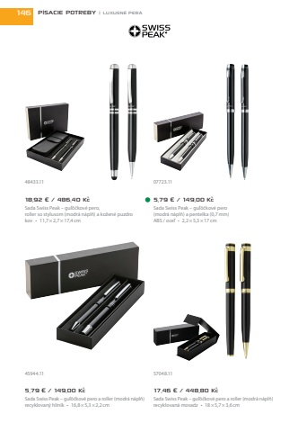 5,79 %u20ac / 149,00 K%u010dSada Swiss Peak %u2013 gu%u013e%u00f4%u010dkov%u00e9 pero a%u00a0roller (modr%u00e1 n%u00e1pl%u0148)recyklovan%u00fd hlin%u00edk %u2022 16,8%u00d75,3%u00d72,2cm18,92 %u20ac / 486,40 K%u010dSada Swiss Peak %u2013 gu%u013e%u00f4%u010dkov%u00e9 pero, roller so stylusom (modr%u00e1 n%u00e1pl%u0148) a%u00a0ko%u017een%u00e9 puzdrokov %u2022 11,7%u00d72,7%u00d717,4cm5,79 %u20ac / 149,00 K%u010dSada Swiss Peak %u2013 gu%u013e%u00f4%u010dkov%u00e9 pero (modr%u00e1 n%u00e1pl%u0148) a%u00a0pentelka (0,7 mm)ABS / oce%u013e %u2022 2,2%u00d75,3%u00d717cm17,46 %u20ac / 448,80 K%u010dSada Swiss Peak %u2013 gu%u013e%u00f4%u010dkov%u00e9 pero a%u00a0roller (modr%u00e1 n%u00e1pl%u0148)recyklovan%u00e1 mosadz %u2022 18%u00d75,7%u00d73,6cm45944.1148433.11 07723.1157048.11146 P%u00cdSACIE POTREBY | LUXUSN%u00c9 PER%u00c1