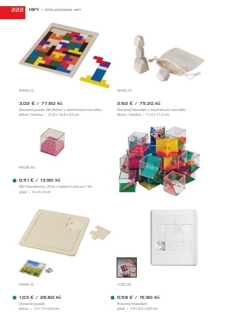 0,51 %u20ac / 13,90 K%u010dMix hlavolamov, 24 ks v%u00a0balen%u00ed (cena za 1 ks)plast %u2022 4%u00d74%u00d74cm3,02 %u20ac / 77,60 K%u010dDreven%u00e9 puzzle (40 dielov) v%u00a0bavlnenom vrec%u00fa%u0161kudrevo / bavlna %u2022 27,8%u00d716,8%u00d70,5cm2,92 %u20ac / 75,20 K%u010dDreven%u00fd hlavolam v%u00a0bavlnenom vrec%u00fa%u0161kudrevo / bavlna %u2022 11,5%u00d711,5cm1,03 %u20ac / 26,60 K%u010dDreven%u00e9 puzzledrevo %u2022 15%u00d715%u00d70,4cm0,59 %u20ac / 15,90 K%u010dPosuvn%u00fd hlavolamplast %u2022 7,4%u00d70,5%u00d78,8cm84528.mc97843.13 56455.1309445.15 11201.06222 HRY | SPOLO%u010cENSK%u00c9 HRY