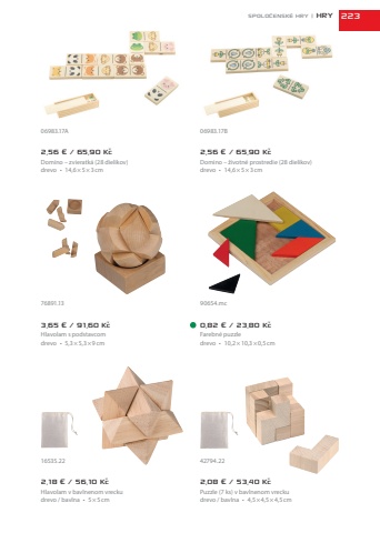 2,56 %u20ac / 65,90 K%u010dDomino %u2013 zvieratk%u00e1 (28 dielikov)drevo %u2022 14,6%u00d75%u00d73cm2,56 %u20ac / 65,90 K%u010dDomino %u2013 %u017eivotn%u00e9 prostredie (28 dielikov)drevo %u2022 14,6%u00d75%u00d73cm3,65 %u20ac / 91,60 K%u010dHlavolam s%u00a0podstavcomdrevo %u2022 5,3%u00d75,3%u00d79cm0,82 %u20ac / 23,80 K%u010dFarebn%u00e9 puzzledrevo %u2022 10,2%u00d710,3%u00d70,5cm2,18 %u20ac / 56,10 K%u010dHlavolam v%u00a0bavlnenom vreckudrevo / bavlna %u2022 5%u00d75cm2,08 %u20ac / 53,40 K%u010dPuzzle (7 ks) v%u00a0bavlnenom vreckudrevo / bavlna %u2022 4,5%u00d74,5%u00d74,5cm42794.2290654.mc16535.2276891.1306983.17A 06983.17BSPOLO%u010cENSK%u00c9 HRY | HRY 223