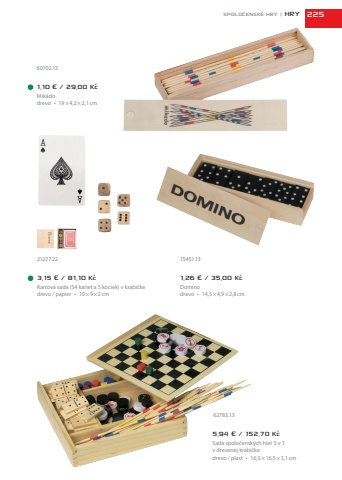 1,10 %u20ac / 29,00 K%u010dMik%u00e1dodrevo %u2022 19%u00d74,2%u00d72,1cm3,15 %u20ac / 81,10 K%u010dKartov%u00e1 sada (54 kariet a%u00a05 kociek) v%u00a0krabi%u010dkedrevo / papier %u2022 10%u00d79%u00d72cm1,26 %u20ac / 35,00 K%u010dDominodrevo %u2022 14,5%u00d74,9%u00d72,8cm5,94 %u20ac / 152,70 K%u010dSada spolo%u010densk%u00fdch hier 5 v%u00a01 v%u00a0drevenej krabi%u010dkedrevo / plast %u2022 16,5%u00d716,5%u00d73,1cm62783.1321277.22 15451.1360702.13SPOLO%u010cENSK%u00c9 HRY | HRY 225