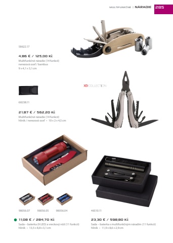 21,87 %u20ac / 562,20 K%u010dMultifunk%u010dn%u00e9 n%u00e1radie (14 funkci%u00ed)hlin%u00edk / nerezov%u00e1 oce%u013e %u2022 10%u00d72%u00d74,5cm4,86 %u20ac / 125,00 K%u010dMultifunk%u010dn%u00e9 n%u00e1radie (14 funkci%u00ed)nerezov%u00e1 oce%u013e / bambus9%u00d74,1%u00d73,1cm11,08 %u20ac / 284,70 K%u010dSada %u2013 baterka (9 LED) a%u00a0vreckov%u00fd n%u00f4%u017e (11 funkci%u00ed)hlin%u00edk %u2022 13,5%u00d78,8%u00d73,1cm23,30 %u20ac / 598,80 K%u010dSada %u2013 baterka s%u00a0multifunk%u010dn%u00fdm n%u00e1rad%u00edm (11 funkci%u00ed)hlin%u00edk %u2022 11,9%u00d78,6%u00d72,9cm98056.07 98056.05 98056.04 46510.1168238.1158622.17MULTIFUNK%u010cN%u00c9 | N%u00c1RADIE 285