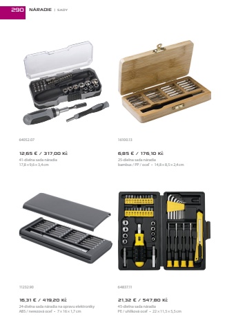 21,32 %u20ac / 547,80 K%u010d45-dielna sada n%u00e1radiaPE / uhl%u00edkov%u00e1 oce%u013e %u2022 22%u00d711,5%u00d75,5cm12,65 %u20ac / 317,00 K%u010d41-dielna sada n%u00e1radia17,8%u00d79,6%u00d73,4cm6,85 %u20ac / 176,10 K%u010d25-dielna sada n%u00e1radiabambus / PP / oce%u013e %u2022 14,8%u00d78,5%u00d72,4cm16,31 %u20ac / 419,20 K%u010d24-dielna sada n%u00e1radia na opravu elektronikyABS / nerezov%u00e1 oce%u013e %u2022 7%u00d716%u00d71,7cm64052.07 16100.1311232.90 64837.11290 N%u00c1RADIE | SADY