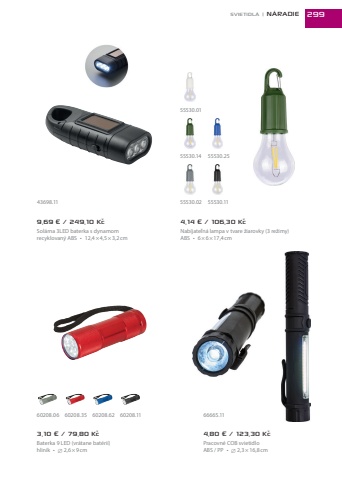 9,69 %u20ac / 249,10 K%u010dSol%u00e1rna 3LED baterka s%u00a0dynamomrecyklovan%u00fd ABS %u2022 12,4%u00d74,5%u00d73,2cm4,14 %u20ac / 106,30 K%u010dNab%u00edjate%u013en%u00e1 lampa v%u00a0tvare %u017eiarovky (3 re%u017eimy)ABS %u2022 6%u00d76%u00d717,4cm4,80 %u20ac / 123,30 K%u010dPracovn%u00e9 COB svietidloABS / PP %u2022 @ 2,3%u00d716,8cm3,10 %u20ac / 79,80 K%u010dBaterka 9 LED (vr%u00e1tane bat%u00e9ri%u00ed)hlin%u00edk %u2022 @ 2,6%u00d79cm55530.0160208.06 66665.1143698.1160208.35 60208.62 60208.1155530.14 55530.2555530.02 55530.11SVIETIDL%u00c1 | N%u00c1RADIE 299