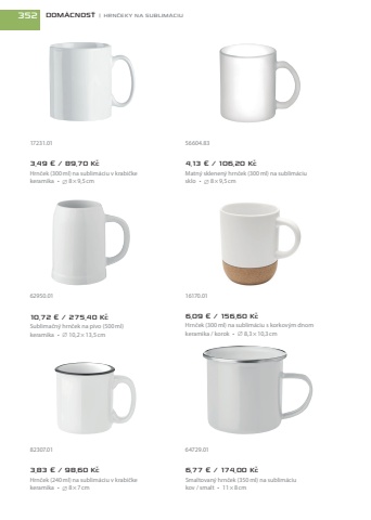 3,49 %u20ac / 89,70 K%u010dHrn%u010dek (300ml) na sublim%u00e1ciu v%u00a0krabi%u010dkekeramika %u2022 @ 8%u00d79,5cm4,13 %u20ac / 106,20 K%u010dMatn%u00fd sklenen%u00fd hrn%u010dek (300ml) na sublim%u00e1ciusklo %u2022 @ 8%u00d79,5cm10,72 %u20ac / 275,40 K%u010dSublima%u010dn%u00fd hrn%u010dek na pivo (500ml)keramika %u2022 @ 10,2%u00d713,5cm3,83 %u20ac / 98,60 K%u010dHrn%u010dek (240ml) na sublim%u00e1ciu v%u00a0krabi%u010dkekeramika %u2022 @ 8%u00d77cm6,77 %u20ac / 174,00 K%u010dSmaltovan%u00fd hrn%u010dek (350ml) na sublim%u00e1ciukov / smalt %u2022 11%u00d78cm6,09 %u20ac / 156,60 K%u010dHrn%u010dek (300ml) na sublim%u00e1ciu s%u00a0korkov%u00fdm dnomkeramika / korok %u2022 @ 8,3%u00d710,3cm17231.01 56604.8382307.01 64729.0162950.01 16170.01352 DOM%u00c1CNOS%u0164 | HRN%u010cEKY NA SUBLIM%u00c1CIU