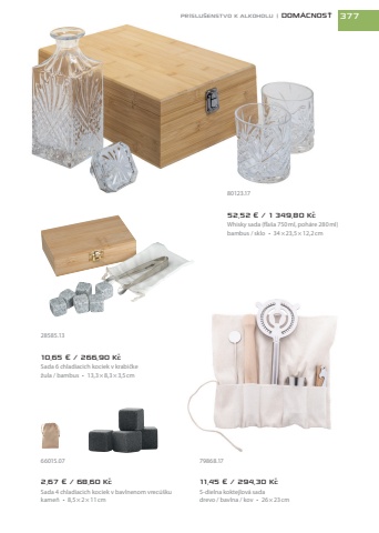 52,52 %u20ac / 1 349,80 K%u010dWhisky sada (f%u013ea%u0161a 750ml, poh%u00e1re 280ml)bambus / sklo %u2022 34%u00d723,5%u00d712,2cm10,65 %u20ac / 266,90 K%u010dSada 6 chladiacich kociek v%u00a0krabi%u010dke%u017eula / bambus %u2022 13,3%u00d78,3%u00d73,5cm11,45 %u20ac / 294,30 K%u010d5-dielna koktejlov%u00e1 sadadrevo / bavlna / kov %u2022 26%u00d723cm2,67 %u20ac / 68,60 K%u010dSada 4 chladiacich kociek v%u00a0bavlnenom vrec%u00fa%u0161kukame%u0148 %u2022 8,5%u00d72%u00d711cm80123.1779868.1728585.1366015.07PR%u00cdSLU%u0160ENSTVO K ALKOHOLU | DOM%u00c1CNOS%u0164 377